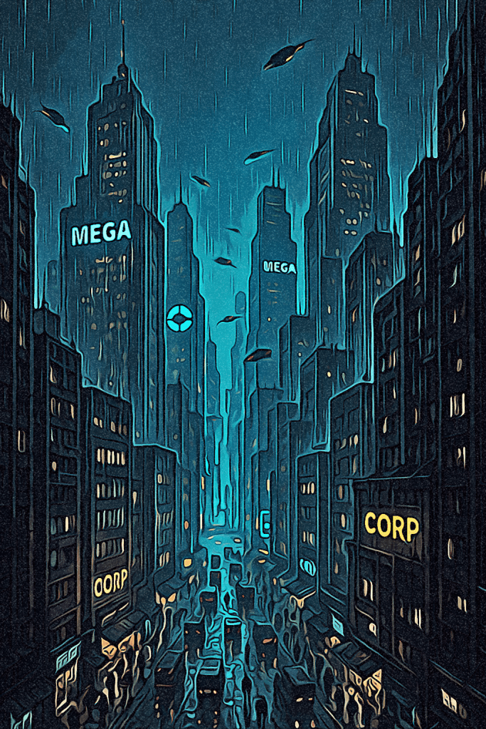 An indie first-person shooter cyberpunk thriller game where you get to explore a dystopian world where mega corporations rule the people and cities.